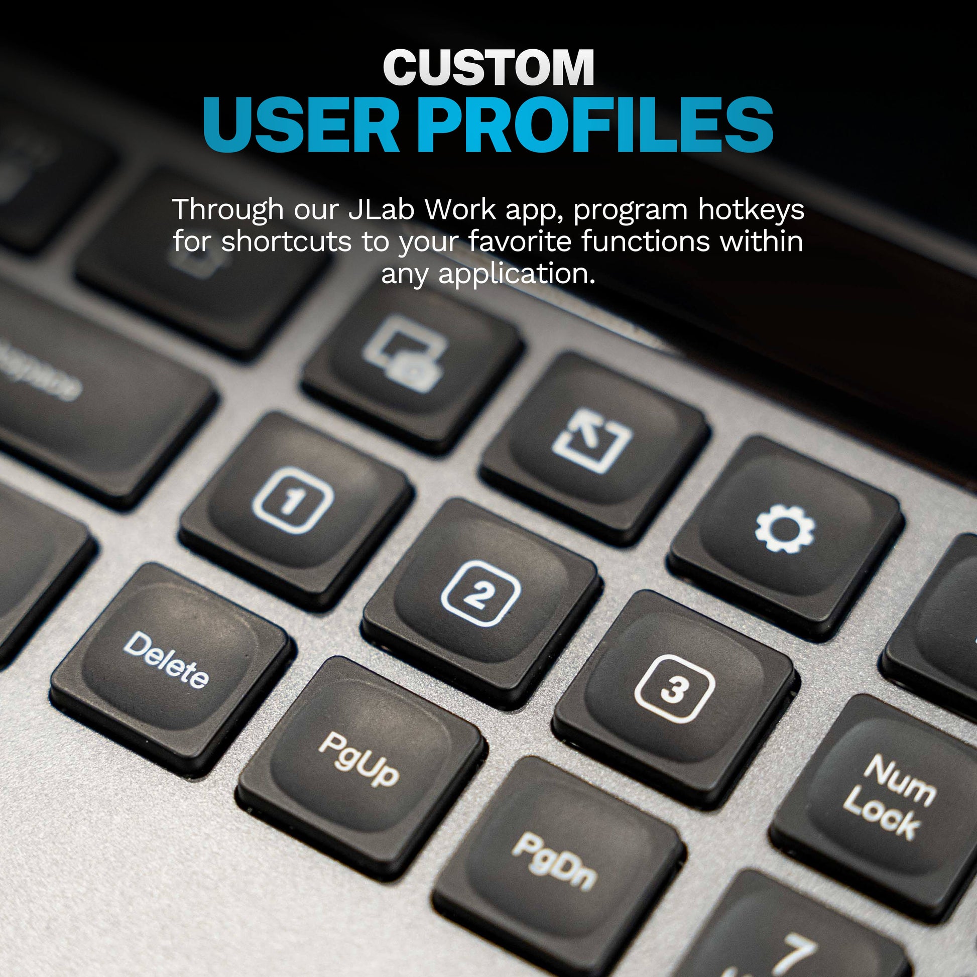 Introducing the Epic Wireless Bluetooth Keyboard and Mouse combo, where minimalist design meets premium performance. Crafted with a high-quality metal base and a stylish interface, the keyboard seamlessly fits into any modern workspace or gaming setup. Plus, with the JLab Work app, you can customize hotkeys and save up to three user profiles for effortless transitions between work and play. Similarly, the Epic Wireless Bluetooth Mouse offers pro-level performance with its sleek design and versatile functionality. Whether you're tackling tasks or dominating the competition, this mouse is the perfect companion. With customizable button functions and three user profiles, switching between tasks has never been easier.