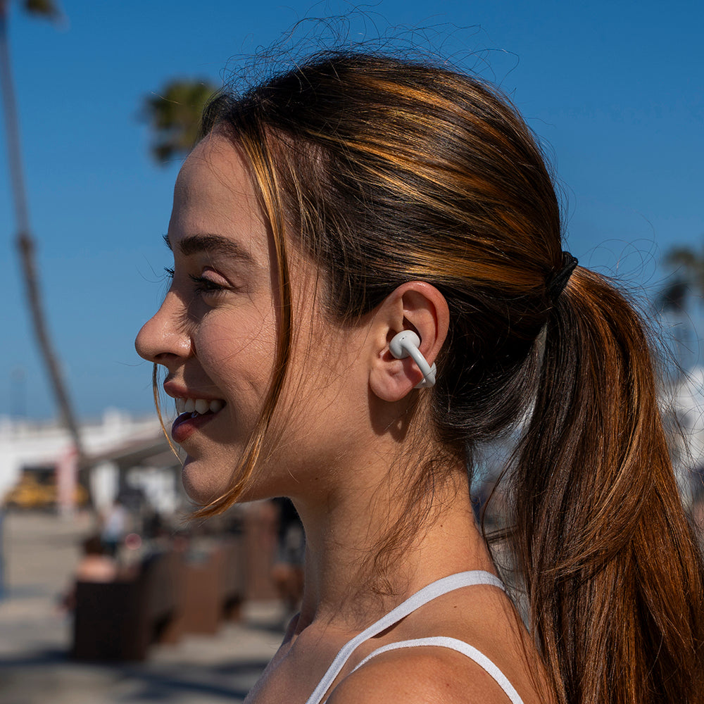 Introducing the Flex Open Earbuds, the perfect blend of technology and ergonomic design for your everyday life. The revolutionary clip-on cuff design ensures a secure, lightweight fit, seamlessly blending your surroundings with immersive open-ear sound. Whether you're running errands, walking, or navigating a busy city, these earbuds adapt to your personal sound preferences for an unparalleled listening experience. With seamless Bluetooth connectivity, you can effortlessly switch from a podcast on your laptop to a call on your phone, while noise-canceling microphones ensure crystal-clear calls. Built for your dynamic lifestyle, the Flex Open Earbuds are your ideal everyday companion.
