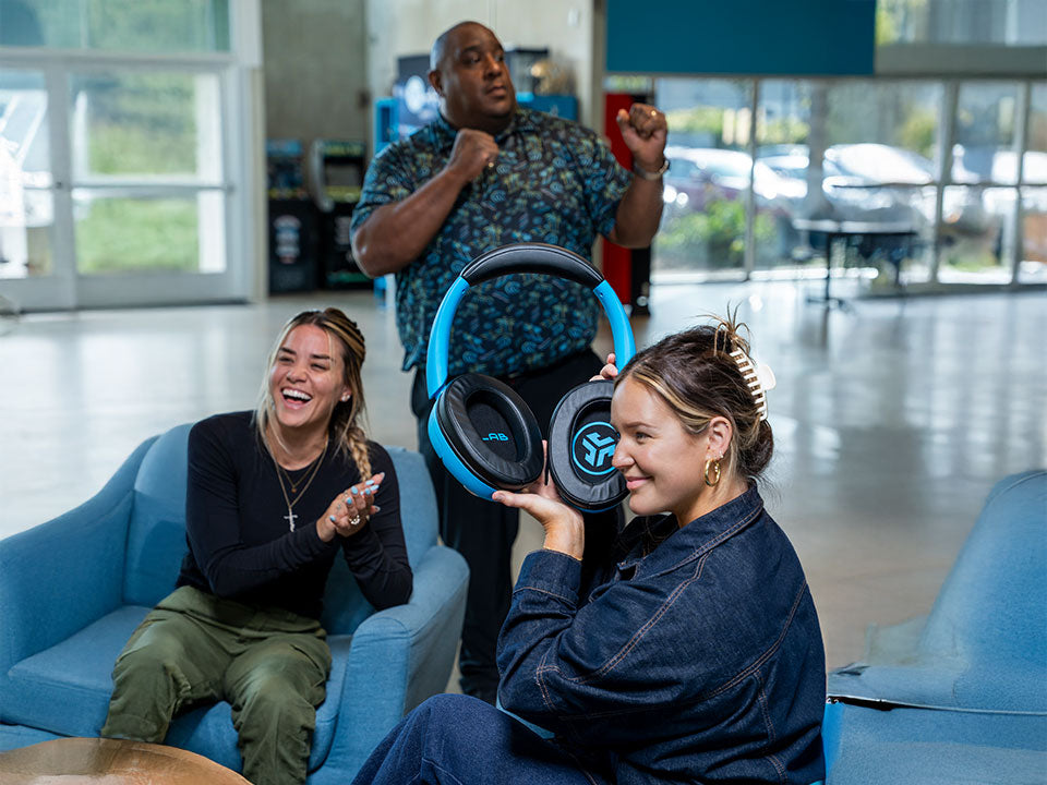 Big wins deserve big sound. Celebrate like a champion with the JLab Blue XL speaker headphones. These aren't average headphones, they're functional Bluetooth speakers that can be worn around the neck or placed on a table. Powered by dual 2.5" drivers and passive radiators delivering 30 watts of pure audio power, the Blue XL's pump out rich, immersive sound for up to 20 hours on a single charge. Fresh off their Birmingham Bowl debut, these oversized celebration speakers are the new MVP of victory moments. Limited quantity available. Grab yours now before they're gone.