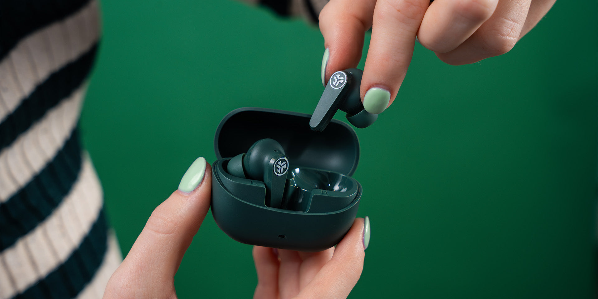 The GO Pods ANC feature an ultra-compact charging case smaller than a credit card, and the earbuds are among the smallest stem designs available, offering a comfortable and secure fit.