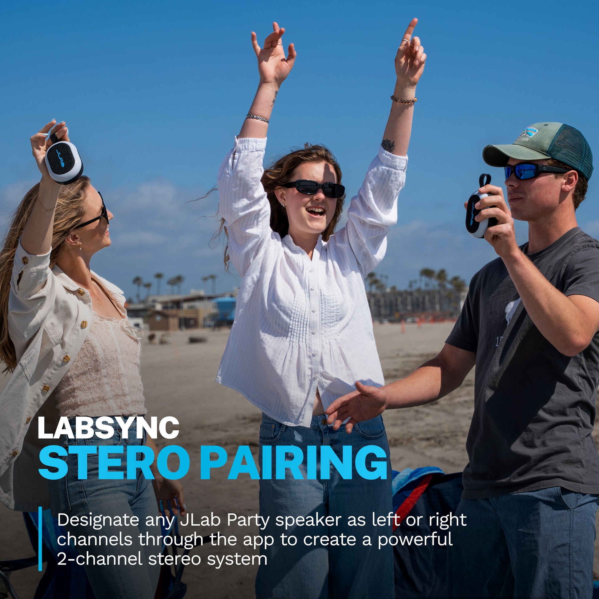 Sync up to 100 JLab Party speakers