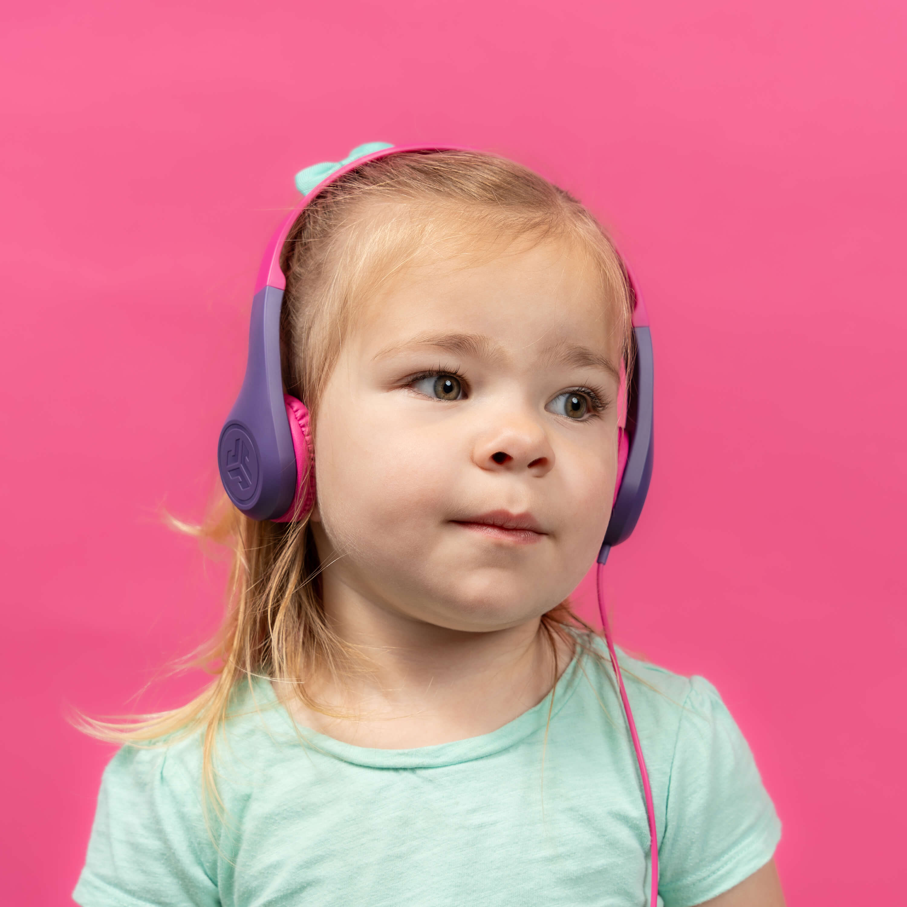 JBuddies Pop Wired Kids Headphones ensure safe listening with volume capped at 85 dB, perfect for kids aged 2+. The lightweight, no-pinch design and soft leatherette ear cushions offer all-day comfort. Compatible with any device using a 3.5mm cable and backed by a lifetime warranty, these headphones make listening safe, comfy, and reliable!