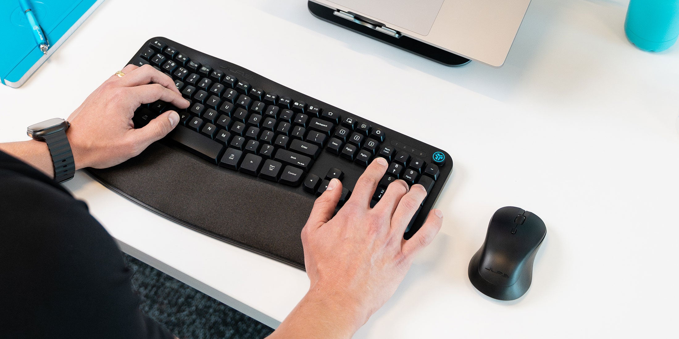 Introducing the JLab Flow Keyboard & Mouse Bundle, where ergonomic design meets innovative technology. The Flow Keyboard's "flowing design" and the ambidextrous full-size mouse provide ultimate comfort for any workspace. Featuring a dedicated AI Button for configurable access to AI apps, customizable profiles via the JLab Work app, and versatile connectivity options, this bundle seamlessly meets your needs. With its Smart Media Knob and long-lasting battery life, the Flow Bundle offers the perfect blend of style, comfort, and functionality for work or play.