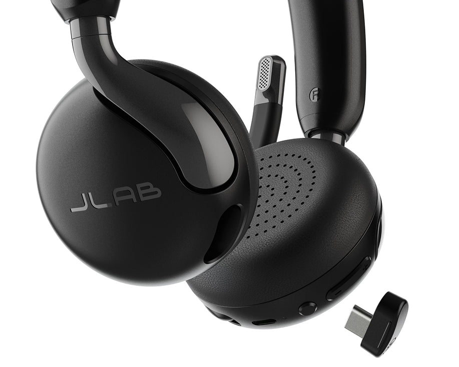 Meet the GO Work 3 wireless on-ear headset, designed for modern work life. Whether you're on back-to-back calls, deep in focus mode, or switching between devices, GO Work 3 keeps you connected and comfortable all day long. Stay in control with a flip-to-mute boom mic and enhanced ENC algorithm that ensures your voice stays crystal clear in any environment. Connect effortlessly with the offset USB-C dongle featuring built-in storage, wired USB-C, or Bluetooth Multipoint for seamless two-device connectivity. Customize your experience with the Lab App for Windows and MacOS, program the new action button, and enjoy 65+ hours of playtime with all-day Cloud Foam comfort. This is the office headset, upgraded.