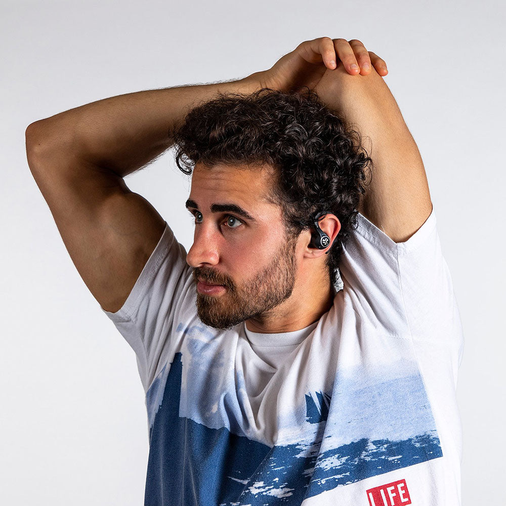 The Epic Air Sport ANC Gen 2 features Hybrid Active Noise Control™ with three modes: ANC On, ANC Off, and Be Aware (pass-through). Four microphones work together to cancel out noise, and you can further customize the settings using the JLab Air ANC app.