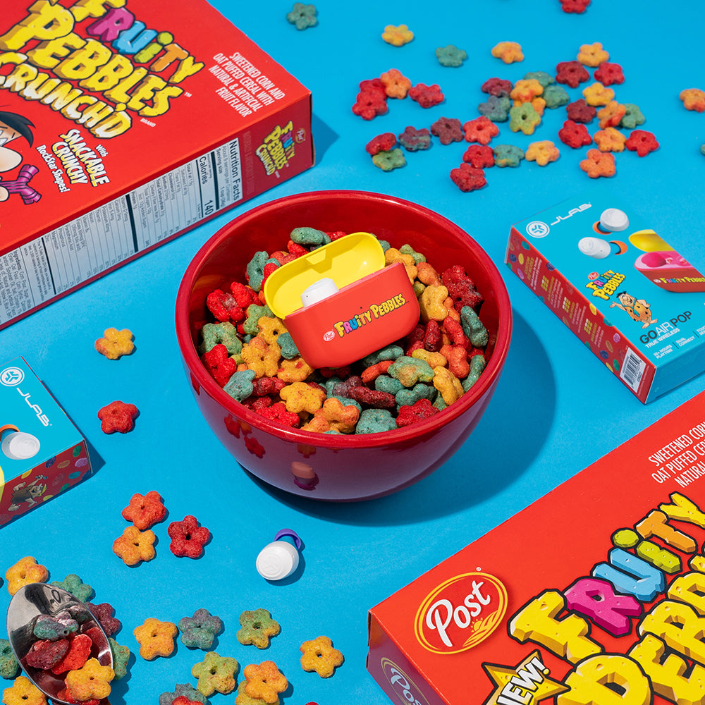 It’s JLab tech masterfully mixed with Fruity Pebbles color. Pump up your breakfast time, study time or anytime with this intense audio swag collaboration. GO Air POP are perfectly pocket-sized with a powerful punch. With 32+ hours of total playtime and our smallest fit ever, the slim case GOes wherever you go. POP it open to auto-connect to your device to talk, take calls and enjoy life on-the-GO.
