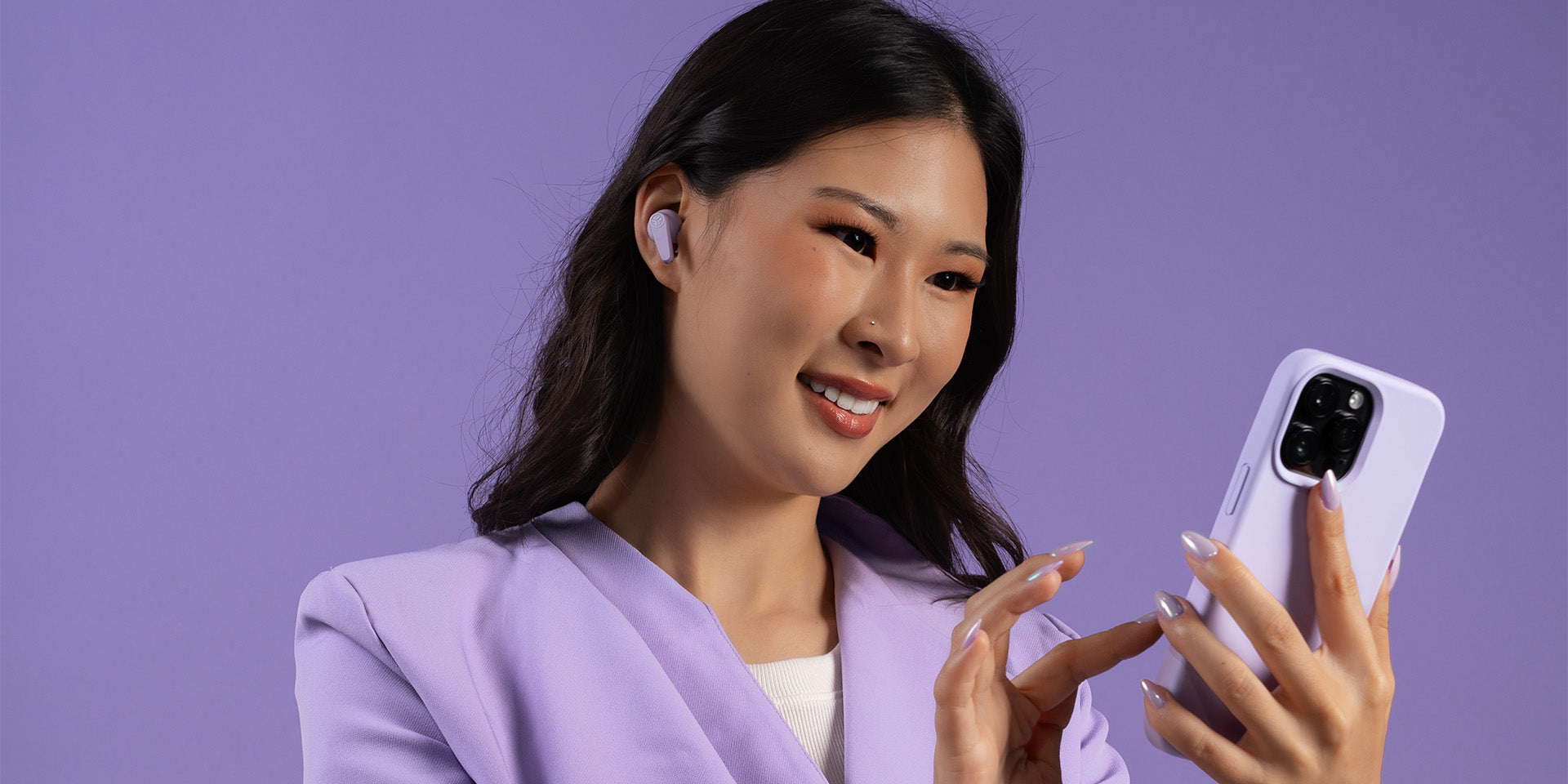 Stylish stem design earbuds with hybrid noise cancellation and 26+ hours of playtime for everyday listening.