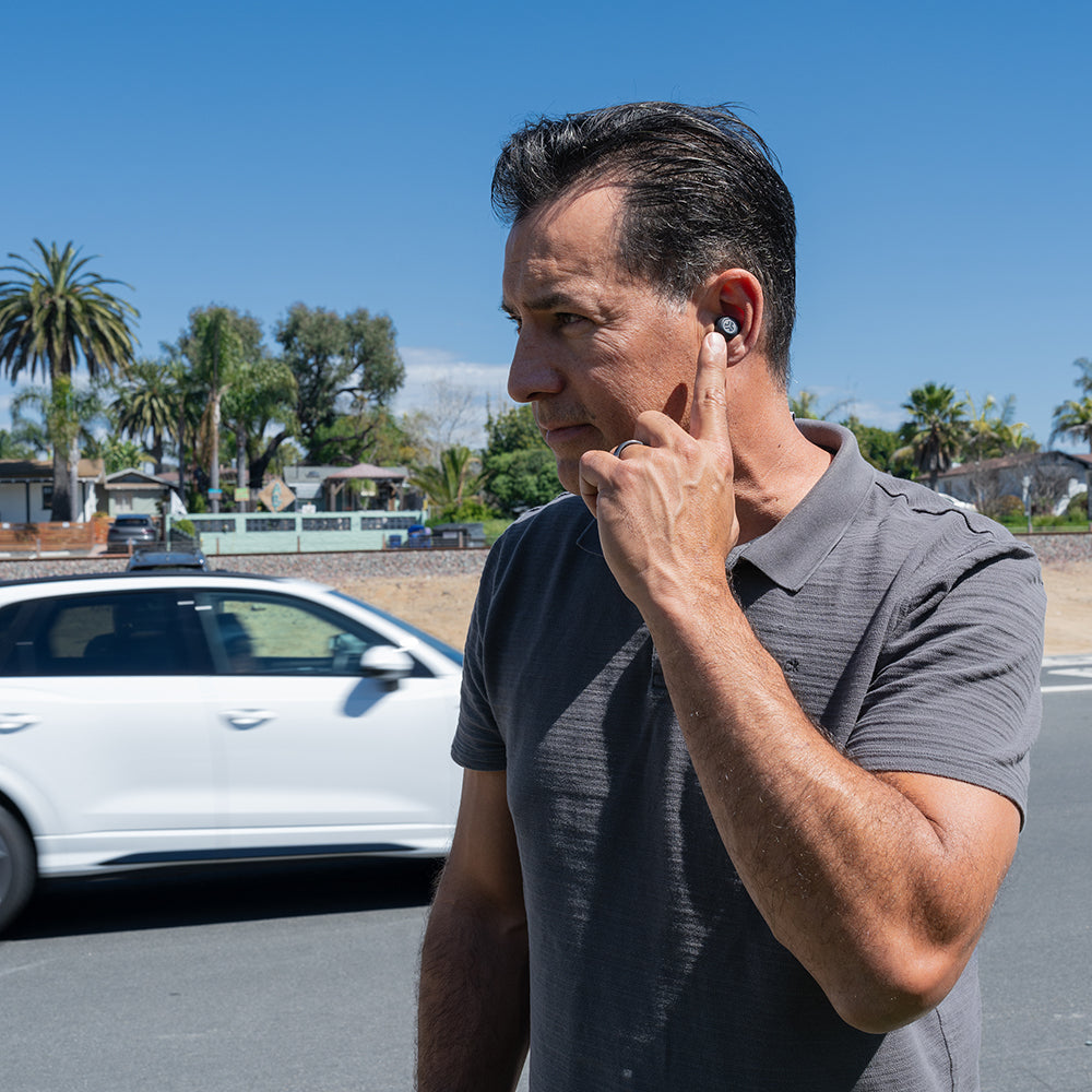 Hey. We know hearing loss isn’t fun. And wearing something that looks like a hearing aid, isn’t fun either.Introducing the Hear OTC Hearing Aid & Earbuds, a sleek 2-in-1 solution merging hearing aid technology with Bluetooth connectivity for music and calls. Seamlessly transition between hearing aid mode to enhance your hearing and earbud mode to enjoy your favorite tunes. From quiet moments at home to conversations with friends, to dining in restaurants and navigating bustling streets, JLab’s four preset hearing modes help you amplify the sounds around you.