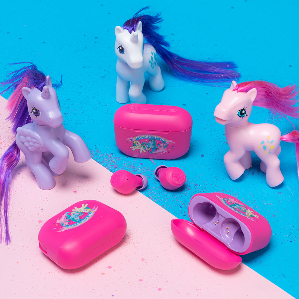 For the nostalgic audiophile, the magic of My Little Pony with JLab tech! Trot down memory lane with Skydancer, Medley, and Firefly. These fab-u-lous Go Air POP’s are perfectly pocket-sized with 32+ hours of total playtime that will have you dreaming of rainbows all day long. POP them open to auto-connect to your device to talk, take calls, and enjoy life’s magical moments on-the-GO.