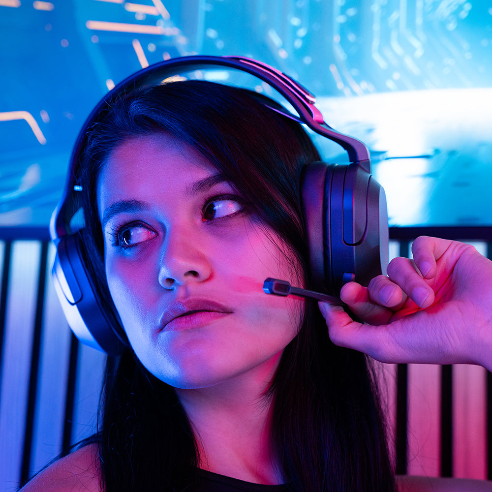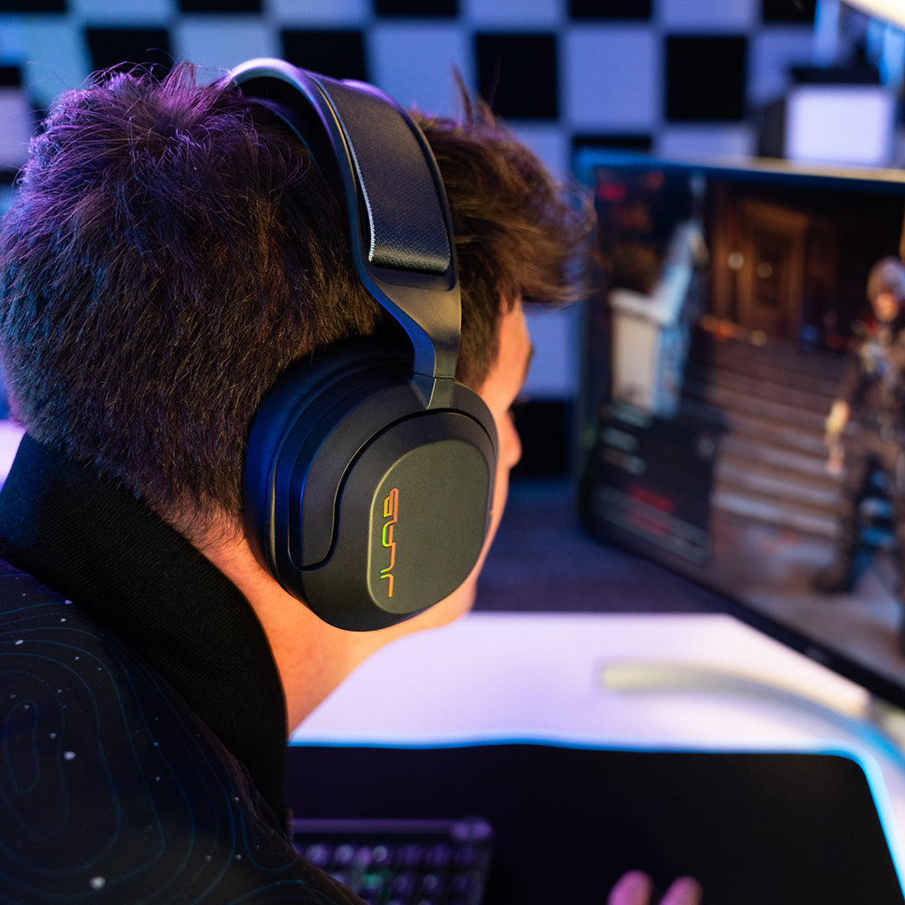 Conquer the night and embark on your next epic gaming odyssey with the JLab Nightfall Gaming Wireless Headset, the ultimate accessory for PC and PlayStation gamers. With dual wireless connections via USB or Bluetooth, this headset delivers unparalleled sound through its robust 50mm drivers and features a sound-isolating inner shelf in each earcup, immersing you completely in the game. Communicate with crystal clarity using the flip-to-mute mic, which precisely captures your voice while eliminating unwanted background noise. Experience supreme comfort with the super-wide adjustable headband and Cloud Foam earcups, designed for extended gaming sessions. The JLab Nightfall Gaming Wireless Headset is your gateway to superior gaming performance and comfort, compatible with both PC and PlayStation.